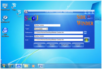 You can drag one or more items from your Desktop or Explorer and drop onto any of the SideWinder Category Slots and they will be automatically stored as launch Buttons. You can have up to 150 launch Buttons per each Category in 10 sub pages (The Demo Version has a limit of only 15 Buttons in 1 sub page). When you drag the items over the Nip, the SideWinder will expand and reveal the Category Slots for you to drop the items as you like. (Note: If you're unable to add certain items directly to the SideWinder, then please create a Shortcut of those and drag & drop the Shortcuts instead of the original item.) You can also drag & drop Texts and URLs from other Applications.