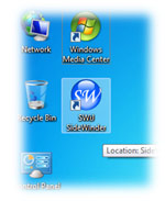 After you have installed the SWiJ SideWinder successfully on your computer you can run it by double clicking the SWiJ SideWinder Icon on your Desktop. If you don't see the Icon shown in the picture on your Desktop, then you can goto your Start Menu and click 'All Programs' and then click the folder 'SWiJ SideWinder' and finally click the 'SWiJ SideWinder' Icon to launch the program.
