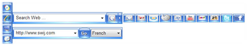 Get quick access to the Web Search Tool and the Address Bar by bringing the Mouse over the "Internet Explorer" button in the Side Bar. Using the Web Search Tool you can instantly search 10 popular websites including major search engines like Google and Yahoo. Just type your search keyword in the combo box and press the Enter Key, or you can click the Website Icon to start the search. Click the expand arrow to select a search engine or press 'Up' or 'Down' keys while at the combo box in order to change the search engines one by one.