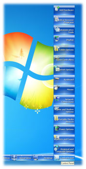 • Changing the Sub Page: Hover over a specific Category (ex: Control Panel) and Left Click on the Category Slot. The sub page of that Category will change one by one, until the end is reached. After that it will come to the first sub page again. (The Demo Version only can have 1 sub page while the Full Version can have upto 10 sub pages per each Category.) You can also use the Mouse Wheel or the 'Up' and 'Down' keys on the Keyboard to quickly and silently change the Sub Page while over the Category Slot.